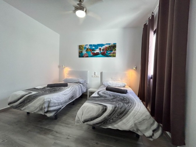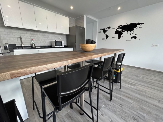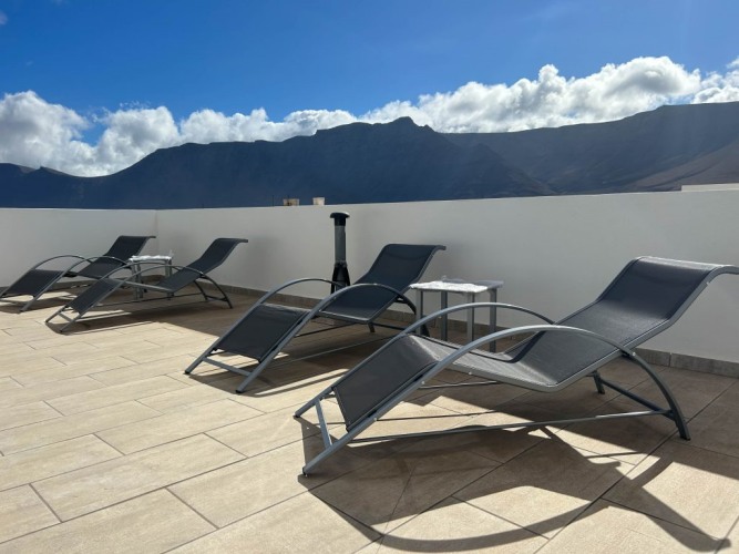 En la planta baja encontrarás un salón-cocina abierto, baño completo, patio interior y dos habitaciones privadas. En la planta alta, salón con TV, sala de trabajo, segundo baño, amplia terraza y otras dos habitaciones privadas. Por último, la azotea te espera con hamacas y vistas espectaculares al mar y al risco de Famara.